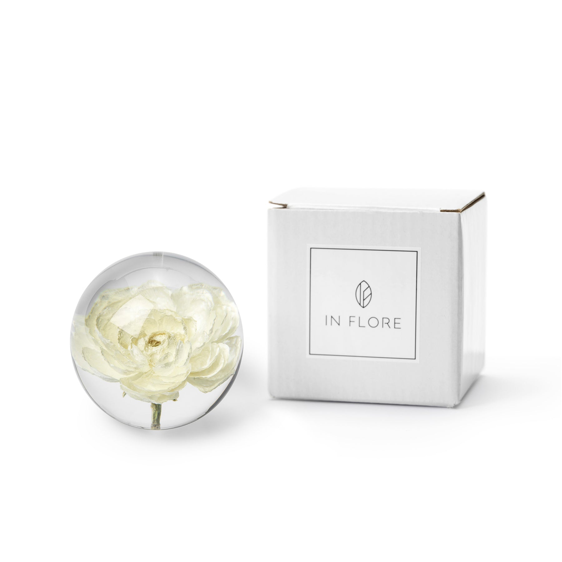 The Peony Rose "Ranunculus" paperweight is a mix of essential beauty in combination with being a practical item for your home. It is also a perfect gift for any occasion and comes in a beautiful In Flore gift box.